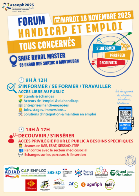 🗓️ A VOS AGENDAS : Du 17 au 21 novembre 2025 🎉 Pour cette 29ème édition de la Semaine Européenne pour l’Emploi des Personnes Handicapées (#SEEPH2025), de nombreuses actions et animations sont organisées partout en France par les acteurs impliqués dans l’insertion socioprofessionnelle durable des personnes en situation de handicap. À ce titre, l’ADIAD, le […]